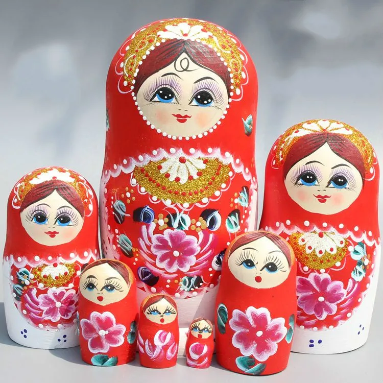 7pcs/set Hand Paint Matryoshka Dolls Set Creative Wedding Party Decoration Wooden Russian Nesting B