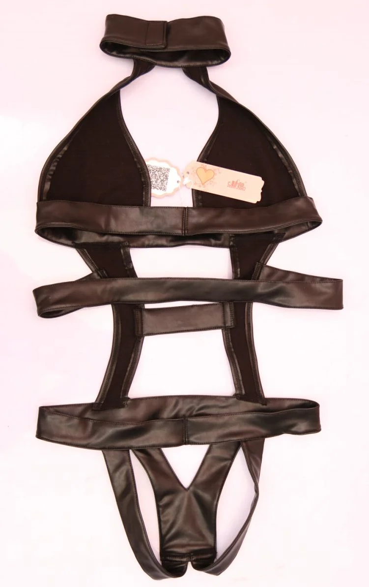 HIGH QUALITY COSPLAY Maid High Cut Stripe High Neck Halter Body Wear One Piece Catsuit Sexy Erotic Lingerie Club