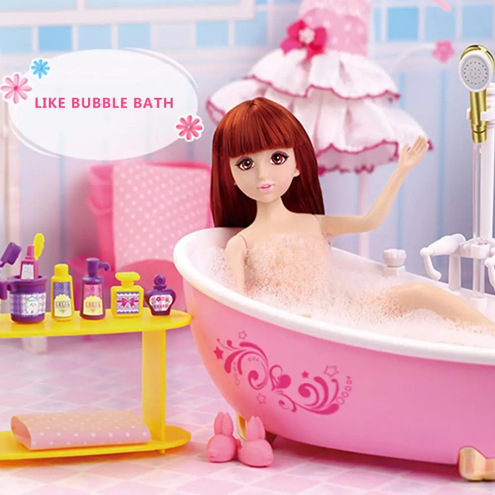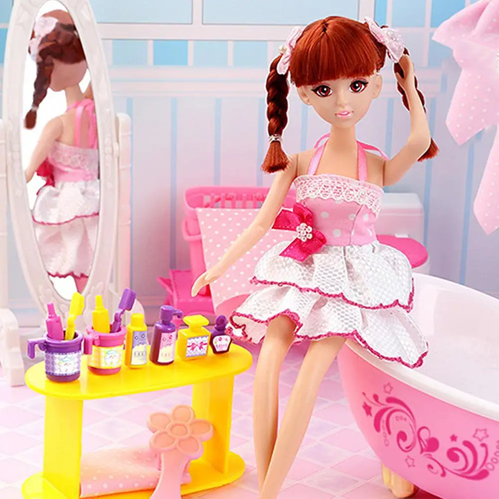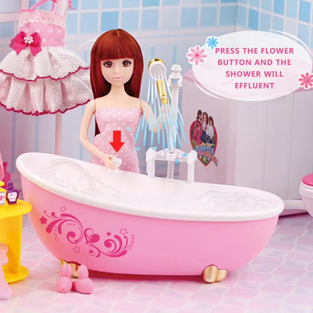 Doll Queen Dream Bathroom Set Gift Box Child Girl Play House Bath Toy Gift Bathroom Furniture And D